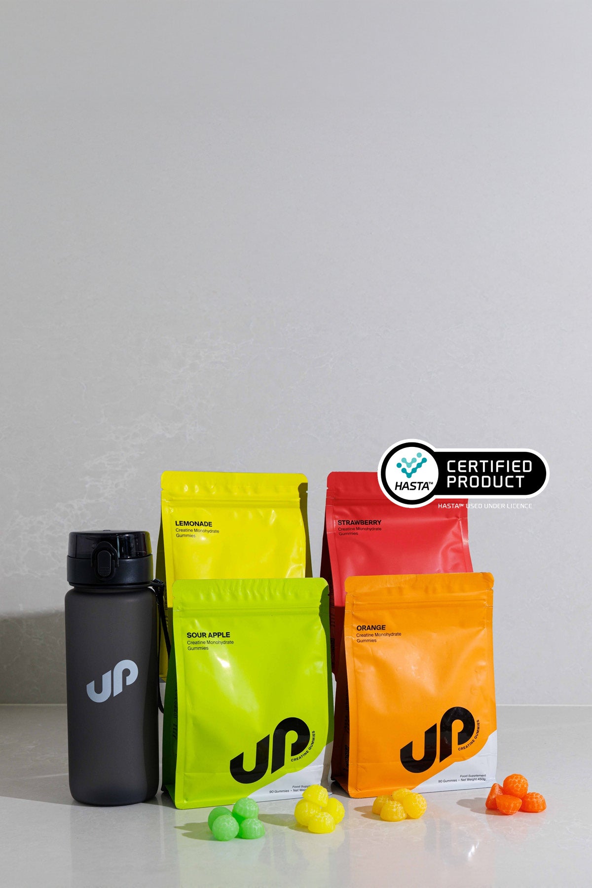 Up Creatine Gummies - No powders. No mess, No excuses. Just clean, high-quality creatine delivered in a form that fits your lifestyle. Convenient, effective, and seriously enjoyable to take.